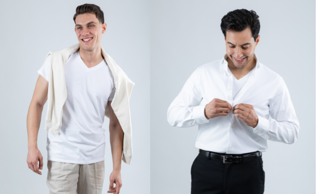T-shirt undershirt cotton stretch with deep V - 3-pack